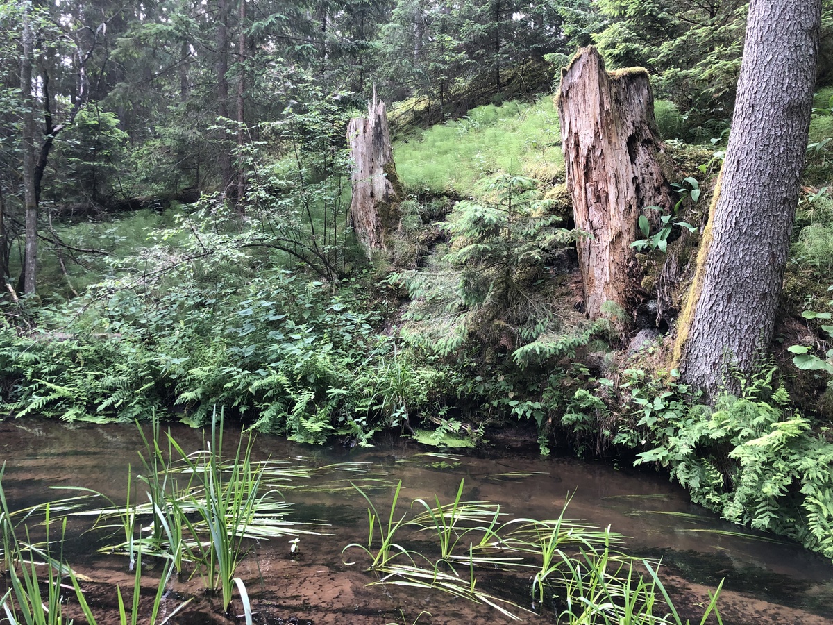 Asiūklių miškai puošia pakrantes. Prieblanda apsupa ir uždaro, eglių šakos glosto plaukus... Vėl išnyru į vandens erdvę. Nepaliesta upė dangstosi užvirtusiais medžiais medeliais. Pinasi nugriuvę kamienai ir tveria kelią. Vanduo neria į gelmes ir bėga toliau. Čia ieškau didžiųjų upės gyventojų... Čia kažkada bandžiau juos sugauti, ir vėl noriu pakartoti... Ieškau jų, bet nesėkmės tik sutvirtina tikėjimą. Žinau, kad pamatysiu.
